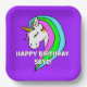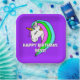 This fun party design features a bright background colour and a happy rainbow mane unicorn. Personalise with your own name and/or message!