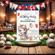 A lovely design with a cute rainbow unicorn playing baseball and elegant calligraphy ! You can personalise this invitation with your own details.