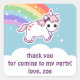 Super cute rainbow unicorn party favour thank you stickers. Personalise with your own message.