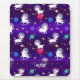 Rainbow Unicorns In Space Purple Ombre. Adorable colorful unicorn astronauts in outer space with planets and shooting stars. Personalize with name.