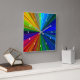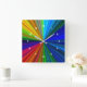 This decorative wall clock features a brilliantly colored abstract of a rainbow vortex. Lines in every color of the rainbow lead into the center: red, orange, yellow, green, blue and purple. The numbers can be cleared if a simpler design is preferred.