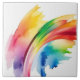Simple watercolor abstract of a half rainbow with colourful background accents.