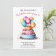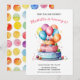 Rainbow Watercolor Cake & Balloons Girls Birthday Invitation