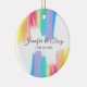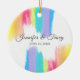 Rainbow Watercolor Elegant Couple Wedding Keepsake Ceramic Ornament