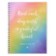An uplifting notebook featuring the quote "Start Each Day With a Grateful Heart" in elegant script on a beautiful rainbow watercolor gradient background. A custom name and heart accent personalize the cover. A thoughtful gift for journaling, daily gratitude practice, or anyone who appreciates a positive daily reminder.