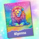 Trendy rainbow watercolor lion with an ombre faux glitter outline is unique and girly. Customise her spiral notebook by personalising it with her name