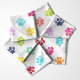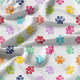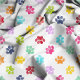 Brighten up your projects with this cheerful Rainbow Watercolor Paw Prints Pattern Fabric. Featuring a playful array of multicolored paw prints on a crisp white background, this fabric is perfect for pet lovers and crafters alike. Ideal for creating unique pet accessories, home decor, or custom gifts, this vibrant design brings a touch of fun and whimsy to any project.