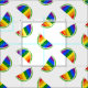 This colorful neon design features multiple rainbow flags in a fun pattern.