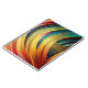 A series of vibrant, curved lines in yellow, red, and green intersect to form an abstract pattern. The overlapping shapes and colour gradients create a sense of depth and movement.