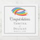 Pretty rainbow abstract wedding champagne label with two beautiful arcs of colour above your ceremony date and names inside an elegant square border. This simple colourful wave art is perfect for a classy LGBTQ couple getting married in the afternoon. Congratulations!