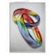A striking digital image of two interlocked wedding rings made from the swirling colours of a rainbow pride flag. A perfect image to represent marriage equality.