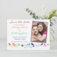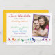 The text and wedding photo on this fun, whimsical, and unique rainbow colour theme birds (songbirds, lovebirds), flower, and leaves (vines) floral wedding photo save the date invitation is fully customisable. A great choice for those having a rainbow theme wedding. To change the text and photo, use the personalise it option. For more extensive text or photo changes, including changes to the font, font colour, font size, photo size, photo placement or text placement, use the customise it option. You can also try it out on different paper types. You could use this rainbow colour wedding save the date card for any other special occasion as well with changes to the text. It would make a nice photo invitation for a variety of special occasions.