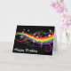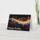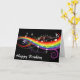 White musical notes floating on a rainbow of swirling colors on a black background. Perfect for wishing the music lover a happy birthday. The text on the front and inside of the card can be customized to create a card for any special occasion.
