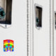 Colourful dog paw print on a rainbow.