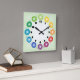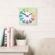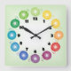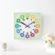 Clock face with twelve colourful yarn balls whose tails end in little hearts. For all who like to forget the time while knitting, crocheting and weaving!