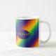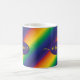 Beautiful diagonal rainbow pattern. Yellow hand scripted typography on a purple shape. This cup is all mine!