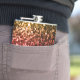 The flask itself is fine. It’s a cheap flask, obviously bought in bulk, however am prepared to overlook that. Given that it is a personalized item, I would have liked to have seen gift boxing instead of the generic packaging. Terrible printing, and/or quality. It’s a cheap, tacky vinyl. It is not cut straight and is also applied in a way that it is overhanging the bottom, causing the glue to catch on items and it will eventually roll and tear, damaging the wrap.