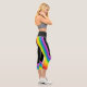 Whether you want to lunge or just lounge, you'll love doing so in these rainbow yoga pants. High waisted, stretch capris feature an abstract style rainbow against a black background. Great for on the go or on the sofa.
