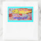 shows colourful rainbow trout chasing a fly with a screen print look! also with "rainbows rock" slogan