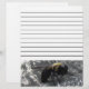 A bumble bee rests on a piece of weathered wood to dry after being caught in sun shower. This photo shows the tiny droplets on the wet bee.