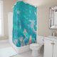 The abstract artwork by ZoeSPEAK on this Shower Curtain was made from an original photograph of raindrops on a leaf in the garden. The colours of the design are tropical aqua blues and peachy pinks.