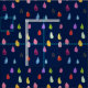Cute colorful design of patterned raindrops with a boho theme. Creative and arty against a navy blue background. pattern collage art style raindrop teardrops.