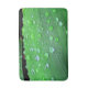 The image on this Bath Mat is an original closeup photograph by ZoeSPEAK of raindrops on a Manilla palm frond. The spring green frond is curved, giving us views of the water droplets from different angles. At the top of the curve we see a horizon of raindrops against the dark background. As the frond curves around, the droplets have bright highlights, and become smaller towards the underside in shadow.