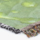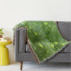 The image on this Throw Blanket is an original photograph by ZoeSPEAK of raindrops on a schefflera leaf. The closeup photo shows the veins of the spring green leaf, with random water droplets decorating it with light yellow green, three dimensional highlights.