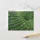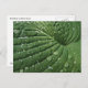 A closeup of a green hosta leaf is featured on this fine art photography botanical postcard.  The veins create a circular spiral abstract pattern.  The recent rain has deposited water droplets and the raindrops reflect the light.  This plant is also known as funkia, plantain lily or giboshi (in Japan).  What a great idea for a gardener or nature lover!
