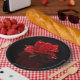 A beautiful red rose with raindrops reflected on black. Match these plates with paper napkins with the same or a similar design for coordinated place settings at your next party or event.