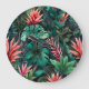 Immerse yourself in the lush beauty of the rainforest with this vibrant watercolor artwork. Featuring exotic green and pink tropical leaves against a dark backdrop, it captures the essence of nature's untamed elegance. Perfect for adding a bold, botanical touch to any space.