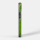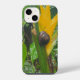This phone case has a picture of a bright yellow rainforest flower with a snail on a plant next to it.