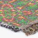 Vibrant and intricate patterns form a kaleidoscopic design with symmetrical arrangements and vivid colours. Shapes interplay with greens, reds, and purples, creating a lively and dynamic visual effect.