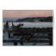 Mount Rainier reigns in the blushing sunset sky over Tacoma and the old piers along Ruston Way.