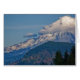 A landscape photograph of the cloud covered Mount Rainier in Washington.