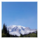 A view of Mount Rainier peaking above a rolling hill with pine trees.