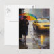 Rainy Day Abstract Woman A Rainbow Umbrella Taxi Postcard