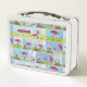 This is a standard metal lunchbox that appears to work just fine. We designed this box ourselves with an uploaded photo and custom text on the front and back. It looks absolutely beautiful except the front of the lunchbox is not centered like it shows in the photo. The print borders don't align with the inset flat part of the box where the preview photo online showed it perfectly centered in there. The back looks nice and centered though.