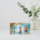 Rainy day autumn red tram umbrella romantic couple business card