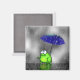 Cute little green frog out on a rainy day under a blue umbrella. Fun and unique magnet! Original cartoon art by Taylor Addams.
