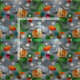 An orange kitty in a green raincoat and hat carries a potted bloom as white daisies dance across a soft grey, rain-streaked sky. Texture and gentle shading give the repeat a vintage storybook feel with cottage-garden charm. Palette: moss green, slate grey, tangerine, cream. Where available, adjust scale or repeat to suit quilts, bows, or décor.