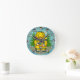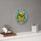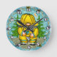 Rainy Day Gnome Clock, gifts by ArtMuvz Illustration. Matching Rainy Day Gnome holding a duck t-shirt, fantasy apparel and gifts. A great way to show your love for gnomes and to bring a smile to someone's face. You can add your name or add text instead. Customise this Gnome Clock to make it uniquely yours or give as custom gnomes gifts,personalised gnomes apparel.