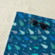 Captivating rain pattern with raindrops in various sizes, each rendered in a spectrum of soothing shades of blue. The background of the canvas can be a white, blue or gentle, muted grey to simulate the ambiance of a rainy day.
