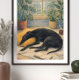 greyhound dog, black dog art, sleeping dog, cozy home decor, rainy day art, houseplants aesthetic, indoor plants, calm atmosphere, peaceful scene, cozy illustration, dog lover gift, relaxing artwork, window rain, hygge style, plant lover art, minimalist cozy, pet artwork, soft textures, serene mood, warm interior