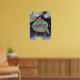 Fun and colorful art adds a pop of color to the space. Nice big poster. The monster is fun, whimsical and unique. The printing looks great. Crisp and clear, with bright colors and dark blacks. The matte poster paper looks nice. It’s not a super flat matte (like printer paper would be), it has the slightly glossy finish of a typical poster. So it looks nice and professional.