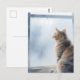 Rainy Window Watercolor Tabby Cat Postcard