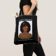 This stylish tote bag celebrates feminist values and the empowerment of women. The eye-catching retro design, set against a black background, features a brown-skinned woman with an Afro hairstyle, orange earrings, and sunglasses. Her presence in ethnic attire symbolises confidence and a strong commitment to women's rights. Framed by the powerful quote "We must raise both the ceiling and the floor," the design is emphasized both above and below, calling for support of equality and rights.