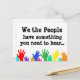 In these turbulent and upsetting times, it is important to take action to protect your interests and promote your vision of a how government should work. Between election cycles, while you are waiting to cast your vote, there is something you can do. You can write your legislators and other elected officials to voice your concerns and tell them what you want done. Be that a protest, vote of support, or suggestion. One postcard may not seem like much of a force to be reckoned with, but multiply that by hundreds, thousands and millions of similarly minded constituents and you will, indeed, be a force of nature. Use this card as an attention getter when it lands in your official’s office mail. It is best to write your message in your own hand on the back side, along with the appropriate mailing address. You may also edit the text on the front to make the point a little differently.