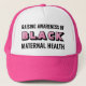 Raising Awareness Black Maternal Health Trucker Hat. This is a pink motivational baseball cap to raise awareness of issues surrounding Black maternal health, especially the high mortality rate in childbirth amongst African Americans and African Caribbeans in the US and the UK. Design says RAISING AWARENESS OF BLACK MATERNAL HEALTH in black and pink typography. Matching gifts and resources available.