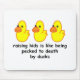 My mum always said that being raised by us kids was like being pecked to death by ducks. I looked around and I see other people says its by chickens, but, my mum said ducks.